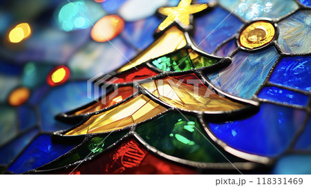 Christmas tree with colorful ornaments reflecting on shiny surface