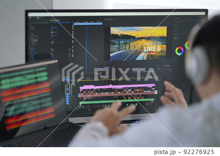 動画・映像クリエイター 男性 動画マーケティング 編集 宣伝活動 俯瞰 マルチディスプレイ ジンバル