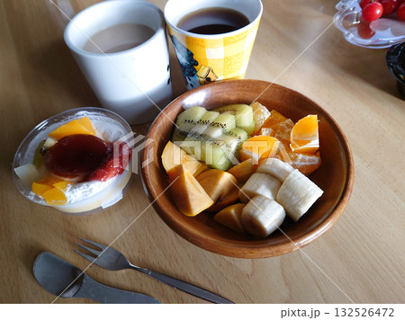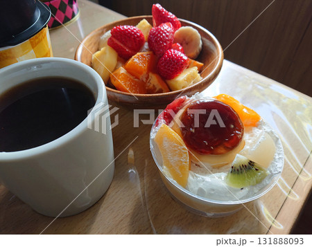 旬のフルーツをふんだんに使ったフルーツパフェ(プリンアラモード仕立て)のスィーツセットの一例