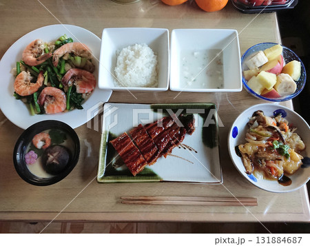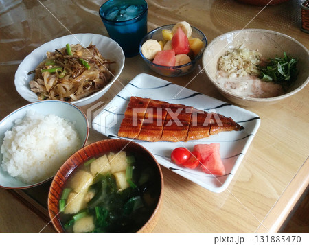 土用の丑の日メニュー~鰻の蒲焼きをメインにセットした焼き魚定食の一例 (小鉢,デザート付きプラン)