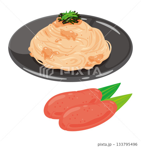 皿に盛られた明太子パスタのイラスト