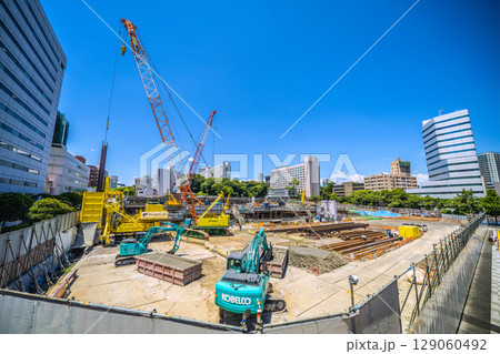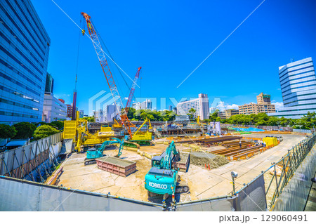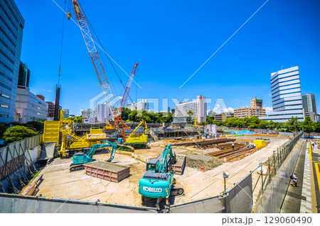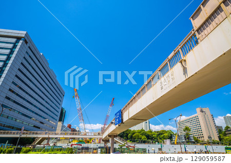 日本の東京都市景観 品川駅前の再開発工事などを望む。クローラークレーンなど大型重機がズラリ…=26日