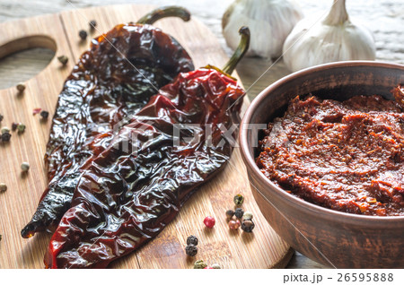 メキシコ料理のチレ・チポトレ (アドボソース漬け)