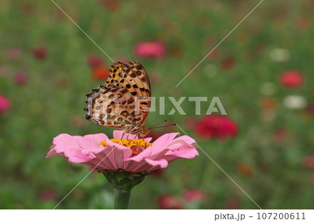 ジニアの花と羽を休めるアゲハ蝶 zinnia & Ageha butterfly