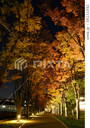夜の黄葉、ケヤキ・欅並木
