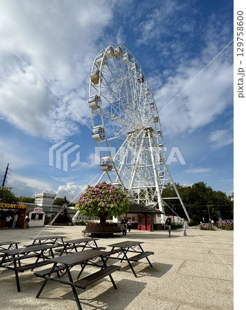 Ferris wheel on the background of blue sky in summer. High quality photo