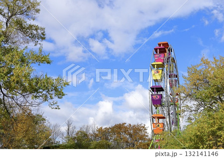 Colorful Ferris wheel above autumn trees
