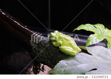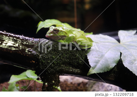 木の上でひと休みするモリアオガエル
