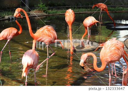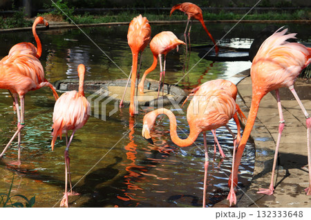 水辺に集うフラミンゴたち