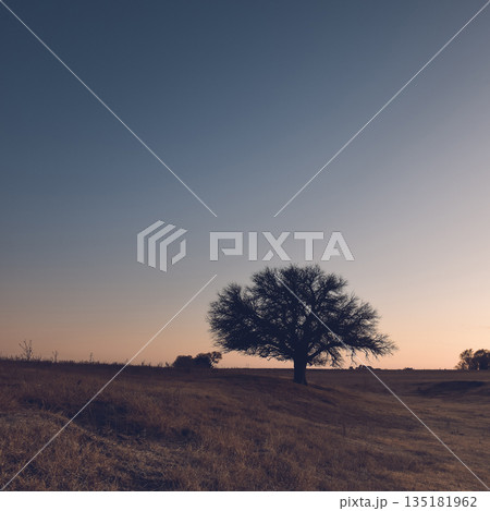 Lonely tree in Pampas Landscape, La Pampa province, Patagonia, Argentina