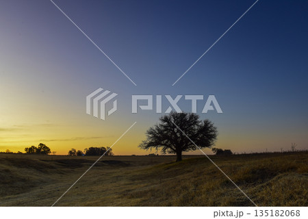 Landscape in La Pampa Argentina at sunset, La Pampa province, Patagonia, Argentina.