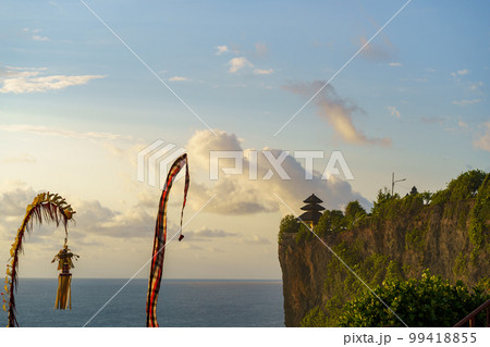 バリヒンドゥー教の寺院と旗(インドネシア・バリ島「ウルワツ寺院」)