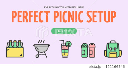 Perfect Picnic Setup Service Concept Horizontal Placard Poster Banner Card Template. Vector