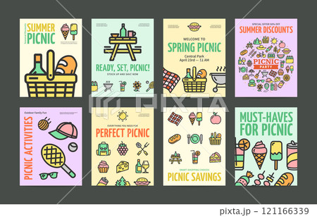 Picnic Party with Bbq Concept Vertical Invitation Placard Poster Banner Card Template Set. Vector