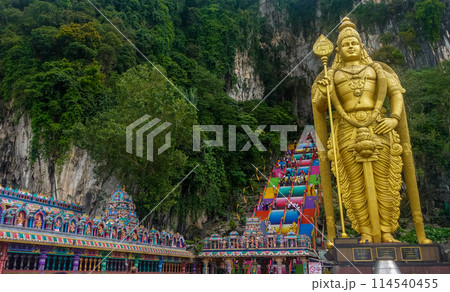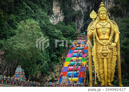 バトゥ洞窟と階段と黄金の像