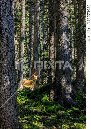 木漏れ日の森とエゾシカ ― 北海道の原生林