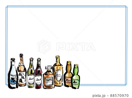 アルコールドリンクボトルの手描きイラストのあるフレーム