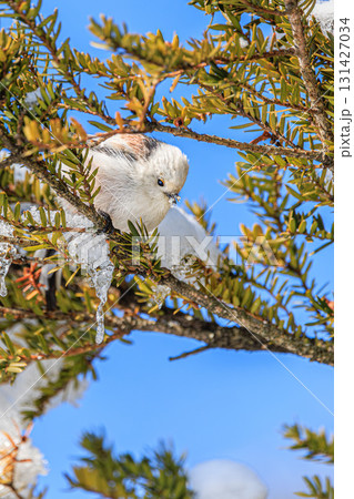 シマエナガのふわふわ冬姿と青空