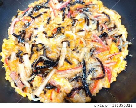 具沢山の家庭の玉子焼き(カニカマ、シラス、昆布の佃煮入り)