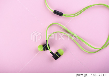 Black Wired Earphones with Audio Jack and Protective Transparent Plastic Case on White Background