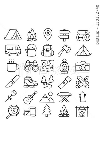 シンプル線画 アウトドア&キャンプ道具アイコンセット