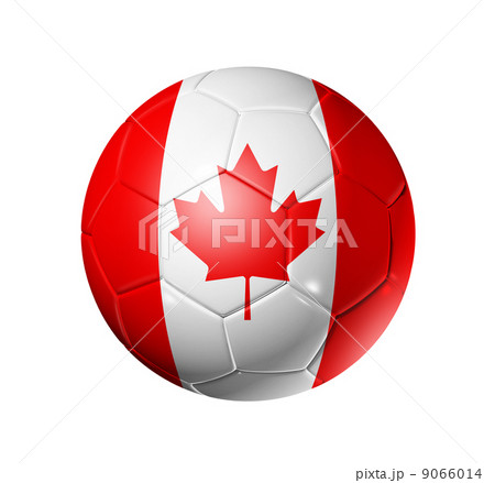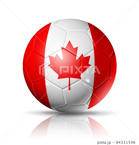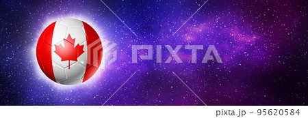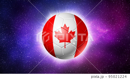 Football soccer ball with Canada flag. Space background. Illustration, banner