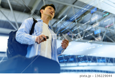 空港でのフライト情報確認 ■撮影協力:関西国際空港(KIX)