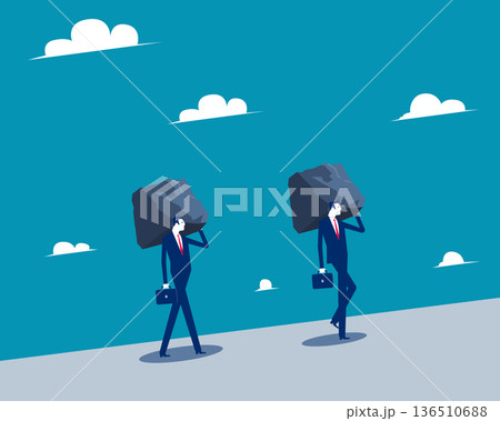Stress. Business person trying to carry the mountains