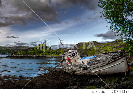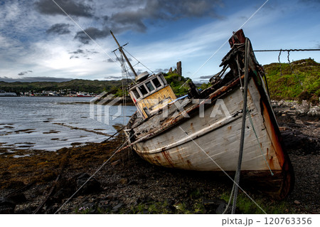 Old Ship Wreck In The Harbor Of Village Kyleakin At The Atlantic Coast Of The Isle Of Skye In Scotland, UK
