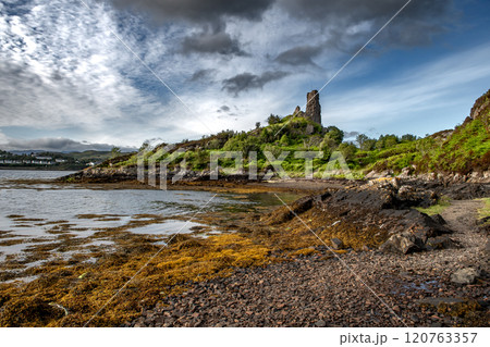 Ruin Of Castle Moil And Loch Alsh At The Village Kyleakin On The Atlantic Coast Of The Isle Of Skye In Scotland, UK