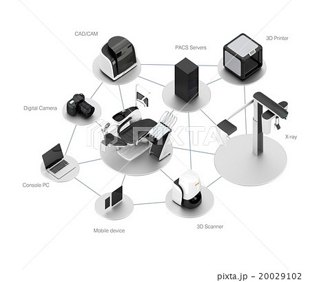 歯科ユニット、CT、CADCAM,3Dプリンタなどの連携。デジタルデンティストリーコンセプト