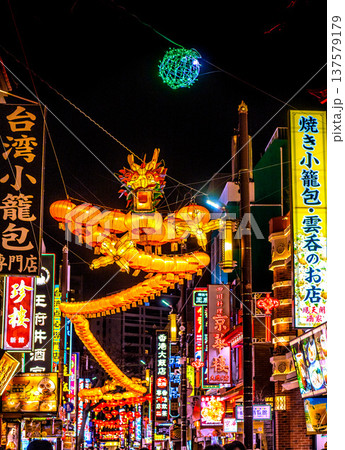 日本の横浜都市景観1月13日。2026春節燈花。中華街大通り・龍のランタンなどを望む…新時代へ