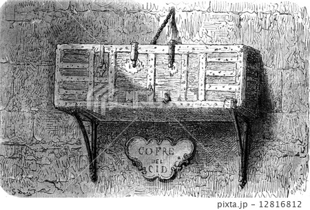 El cofre del Cid (Burgos Cathedral). vintage engraving.
