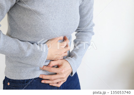 お腹の痛みを感じる女性