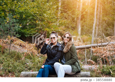two beautiful girls sat down in the forest