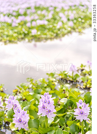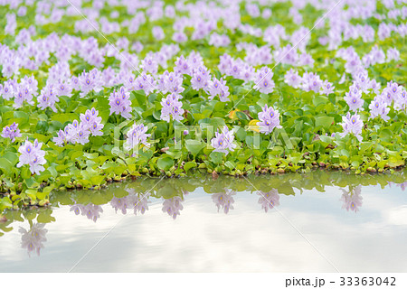 10月秋の池に咲く薄紫色のホテイアオイの花