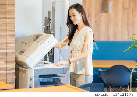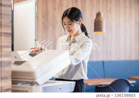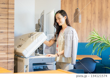オフィスで複合機を操作する女性社員