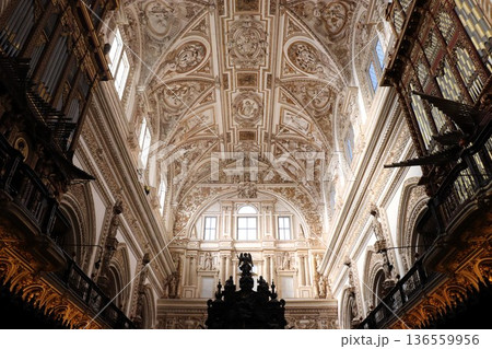 The Mosque Cathedral of Cordoba, Cathedral of Our Lady of the Assumption in Cordoba town in Spain. Ancient stone architecture with intricate details.