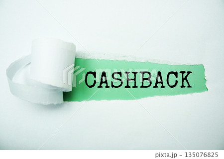 Cashback message written on green paper with torn paper background