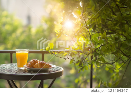 焼き立てのクロワッサンがカッティングボードにのせられた、朝の風景のイメージ