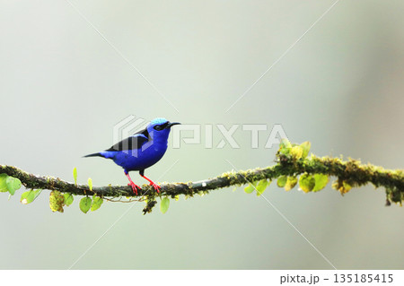 Beautiful shot of a blue little bird from the forest environment. The red-legged honeycreeper (Cyanerpes cyaneus) is a small songbird species in the tanager family.Wild scene from Costa Rica.