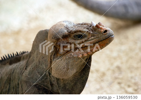 The portrait of the Cuban rock iguana (Cyclura nubila), also known as the Cuban ground iguana.