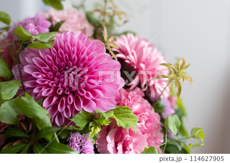 ダリアの花をクローズアップした明るくて優しい雰囲気のイメージ背景素材