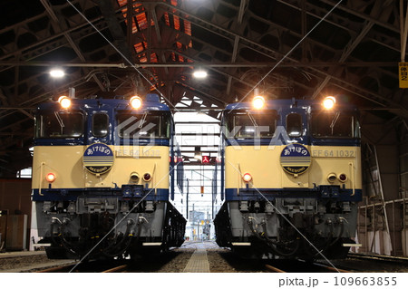レトロな車両庫に佇むEF64-1030号機とEF64-1032号機_2023/11/25撮影