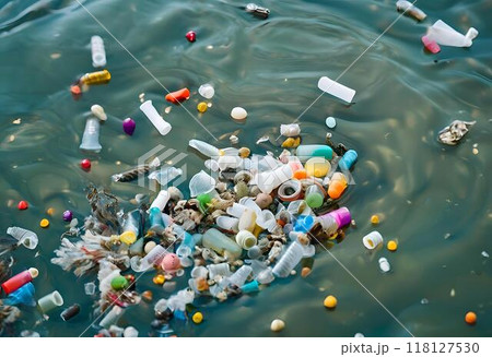 Floating plastic waste contaminating the marine environment