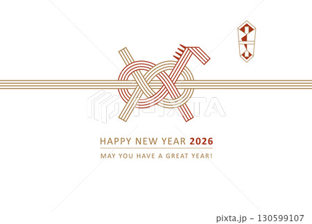 年賀状2026 水引きとウマのシンプルな年賀状 午年 テンプレート 素材 アイコン