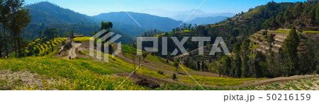 カトマンズ盆地ナガルコットハイキング 菜の花段々畑
