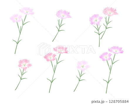 ナデシコ 撫子 水彩 手描き 植物 ボタニカル 夏 秋 イラスト素材