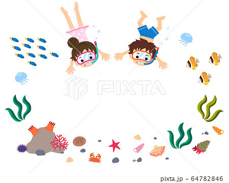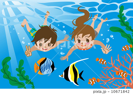 シュノーケリングを楽しむ男の子と女の子 イラスト
