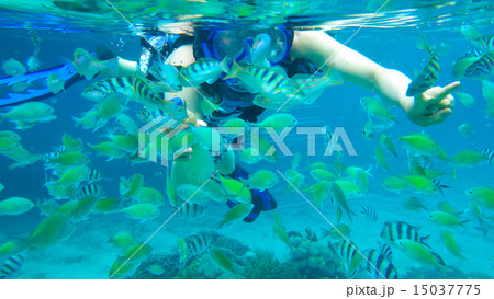 石垣島の海でシュノーケリングをする子供 リゾートイメージ